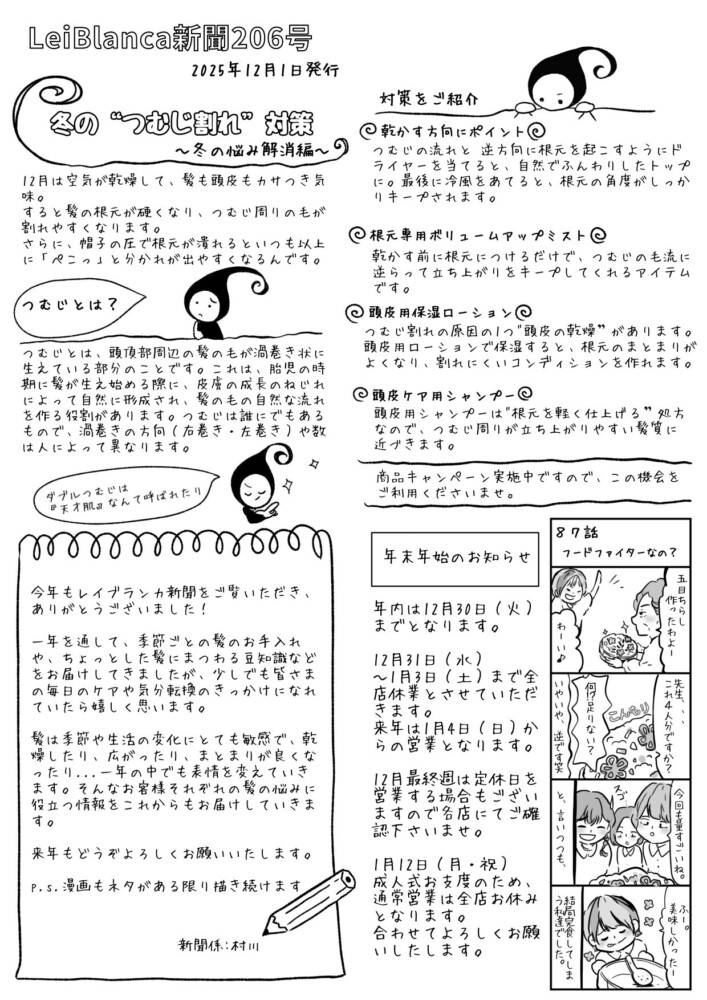 今回は“つむじ割れ”について書かせていただきました🖊️