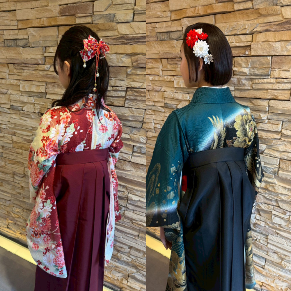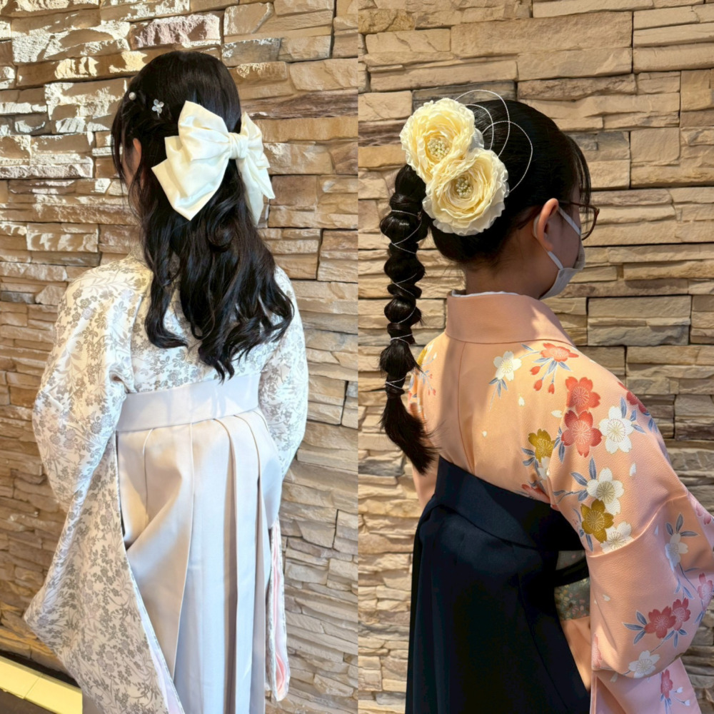 2027年3月24日(水)25日(木)の卒業式 袴着付・ヘアセットご予約は2026年4月3日(金)より承ります。(電話予約のみ)
